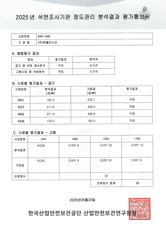 석면조사기관 정도관리