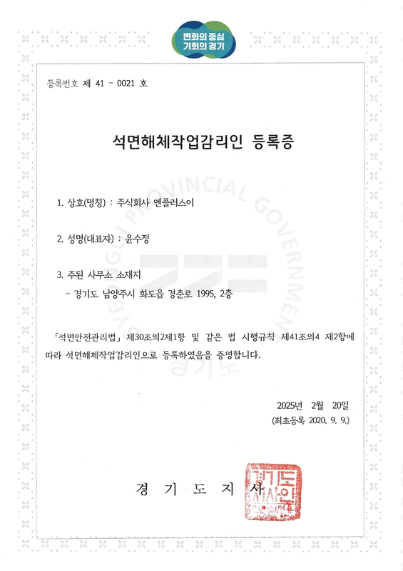 석면해체작업 감리인 등록증